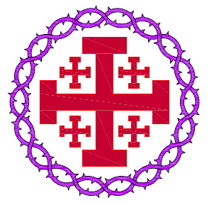 La Cruz de Jerusalén, también conocida como cruz de Tierra Santa o cruz de las Cruzadas o de los cruzados, e icono de la Orden de Caballería del Santo Sepulcro de Jerusalén. Dicha cruz es en realidad una composición de un total de cinco cruces, una cruz griega central, es decir, una cruz con los cuatro lados iguales o cuadrada, que en este caso se encuentra potenciada y cantonada de otras cuatro cruces iguales de menor tamaño, una entre cada brazo de la mayor.