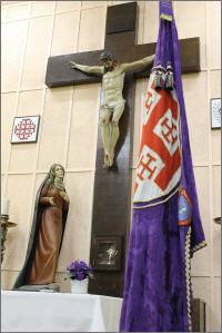 Otro emblema que caracteriza también a la Hermandad es el de la Orden de los Pasionistas de San Pablo de la Cruz, que figura en la fachada de la residencia y en su interior, y que se adoptó al erigirse la Hermandad en cofradía de la Vera Cruz agregada a la que aquella Orden dirige en Roma.
