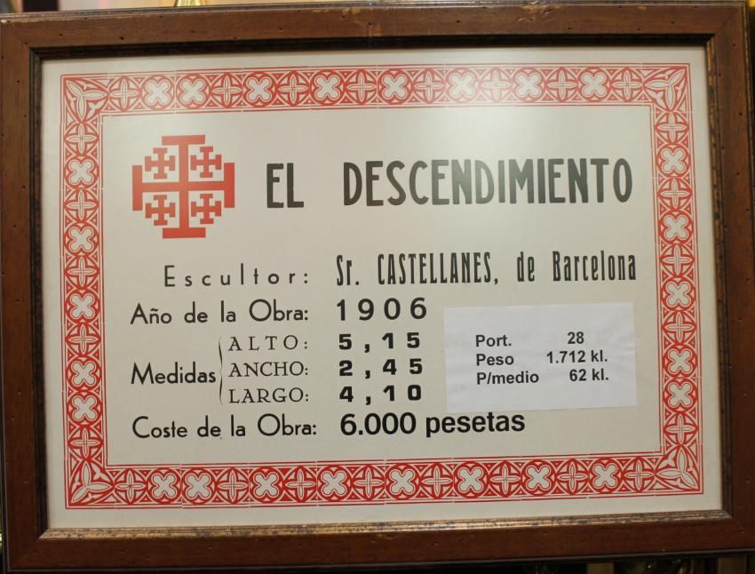 Leyendo las crónicas de la época (1906) sobre este grupo escultórico del Descendimiento, que nos hace llegar ya al Paso décimo de nuestro recorrido procesional, se dice que el magnífico grupo es una verdadera obra de arte que no tiene desperdicio alguno.