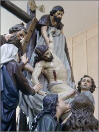 Pero nosotros... miremos y hagamos lo contrario: empecemos a subir la escalera que lleva por la cruz a la puerta del cielo. Nuestros ojos se abren grandes mirando los hombres que suben por la escalera y poco a poco y con gran cuidado bajan a Jesús de su cruz. Nicodemo y José de Arimatea bajan a Jesús de su cruz y se lo entregan a su madre María.